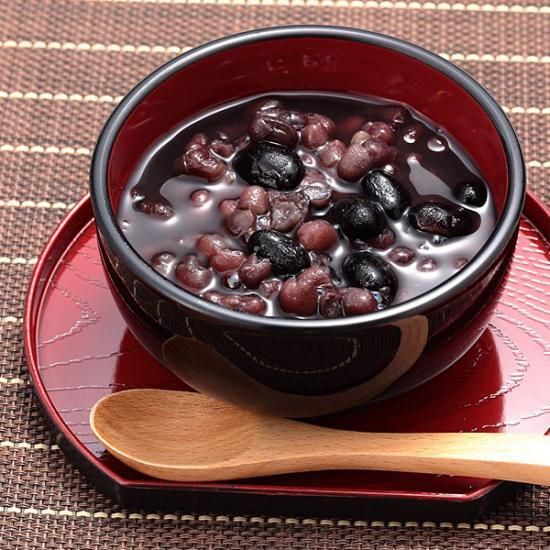 北海道産小豆の風味豊かなぜんざいに国内産丹波黒をトッピング