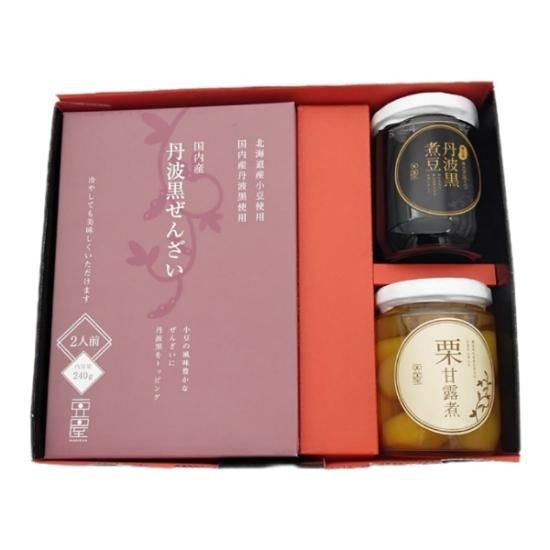 年末年始にピッタリな丹波黒ぜんざい、丹波黒煮豆、栗甘露煮のギフトセットです。